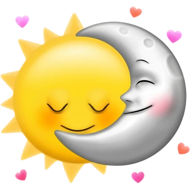 A sun and moon hugging.Let it smile with hearts around emoji