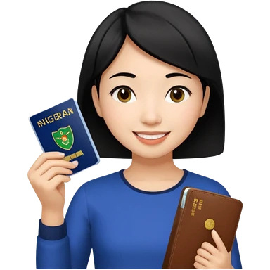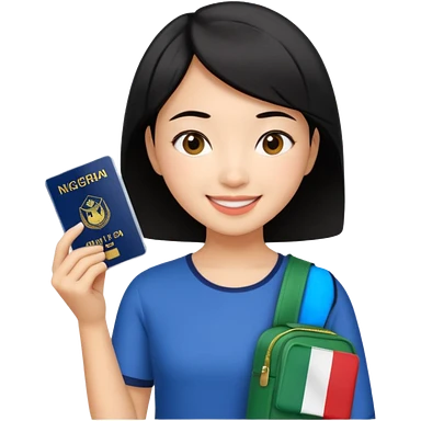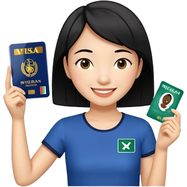 Nigeria, travel visa, with a Asian girl with short black hair, fair skin, and a young, enthusiastic smile emoji
