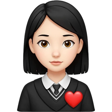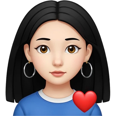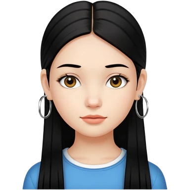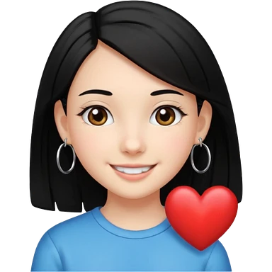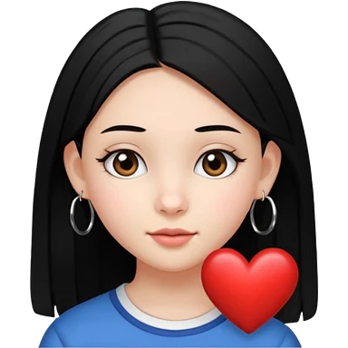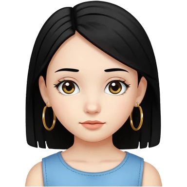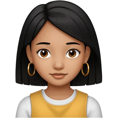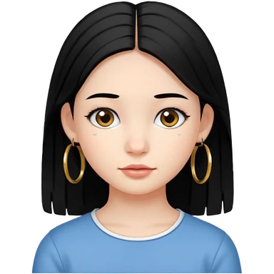 a young 8th grade school girl, with fair skin, heart shape face, has medium length straight black hair and with hoops earrings. emoji