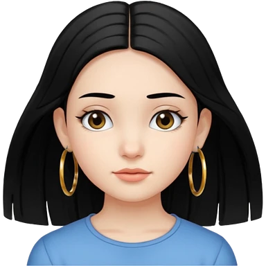 a young girl, with fair skin has medium length straight black hair and with hoops earrings. emoji