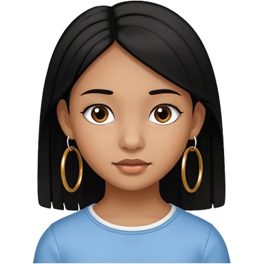 a young girl, with fair brown skin has medium length straight black hair and with hoops earrings. emoji