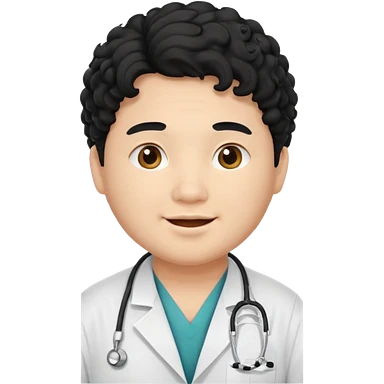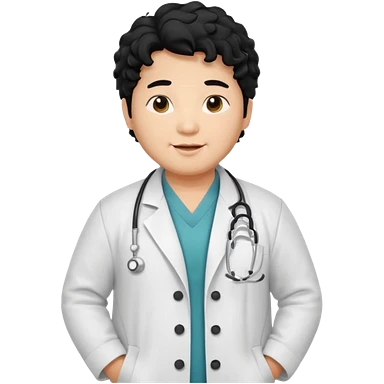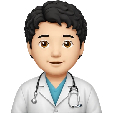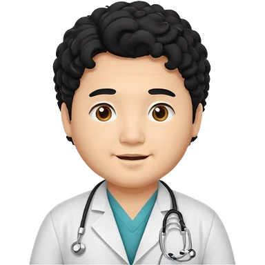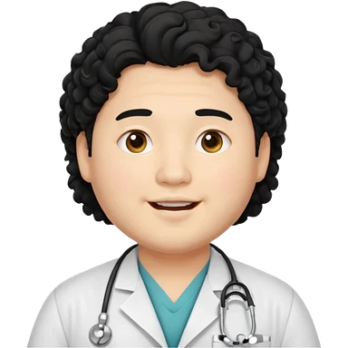 a young asian chubby male doctor with black long curly hair and cheerful face without gpasses emoji