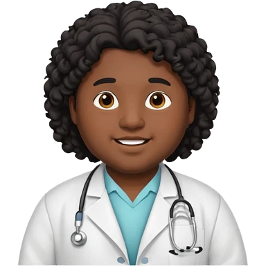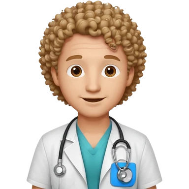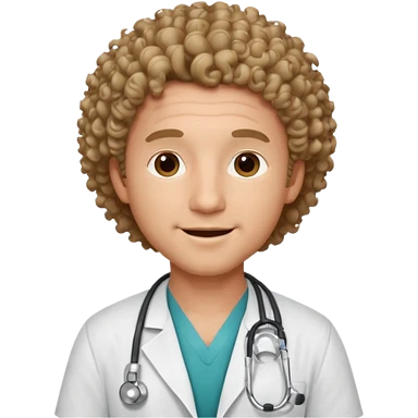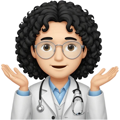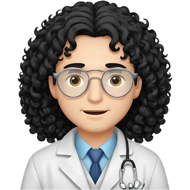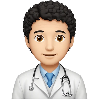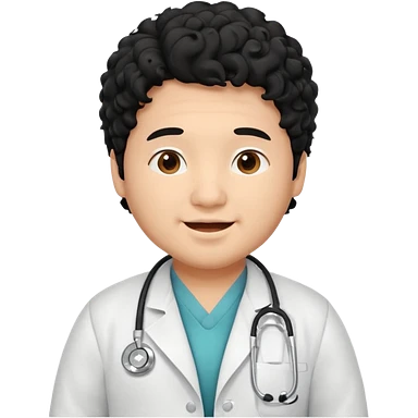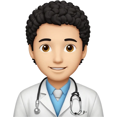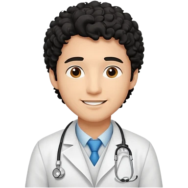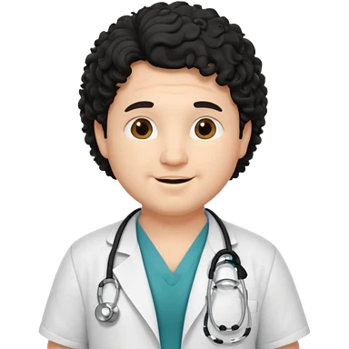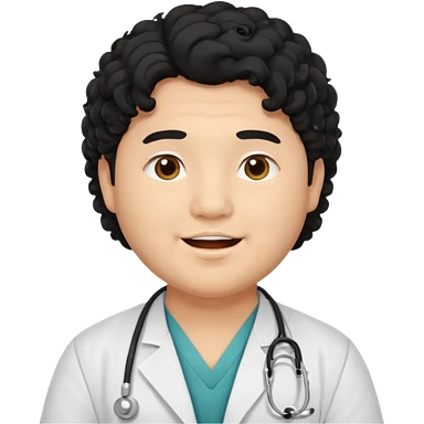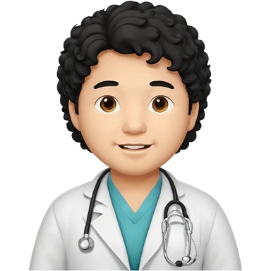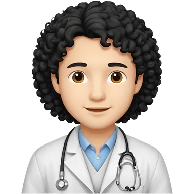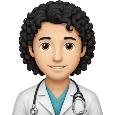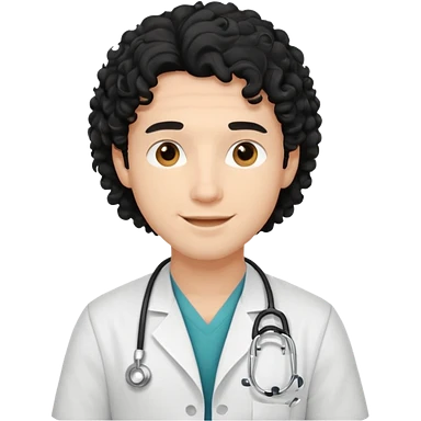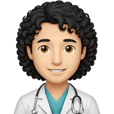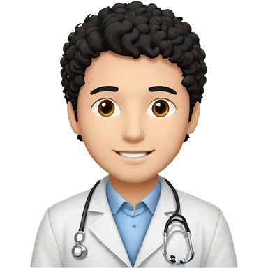 a young male doctor with black long curly hair and cheerful face emoji | AI Emoji Generator