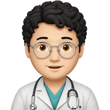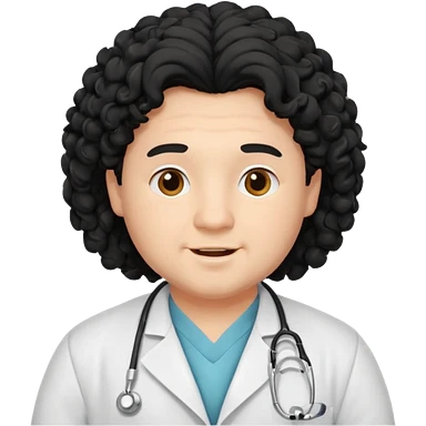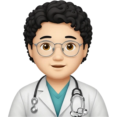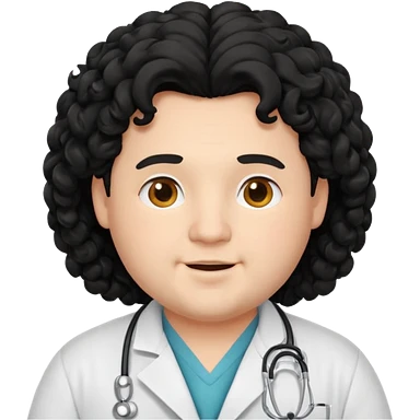 a young chubby male doctor with black long curly hair and cheerful face without gpasses emoji