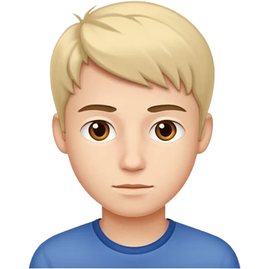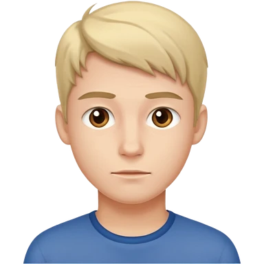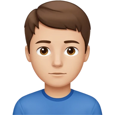A young man with light skin tone, short wavy black hair parted to the side, large brown eyes, and a neutral expression with a small closed-mouth smile. emoji