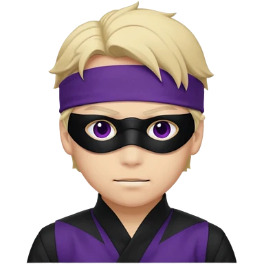 A young man named Satoru Gojo wearing a black/dark purple uniform and dark purple/ black blindfold with a confident smirk emoji | AI Emoji Generator