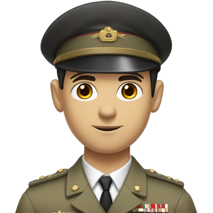 "A young man with short-cropped dark hair, a sharp jawline, and a smug expression. He wears a clean, neutral military uniform, holds a rifle" emoji | AI Emoji Generator