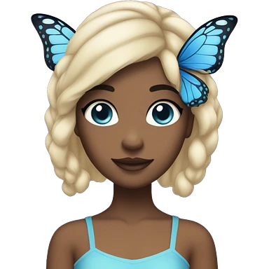 a girl with big black eyes and lightskin with jetblack butterfly cut hair and with blue fairy costume emoji