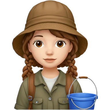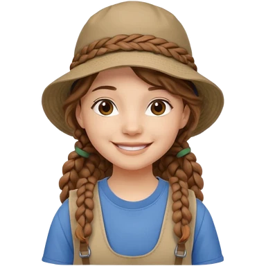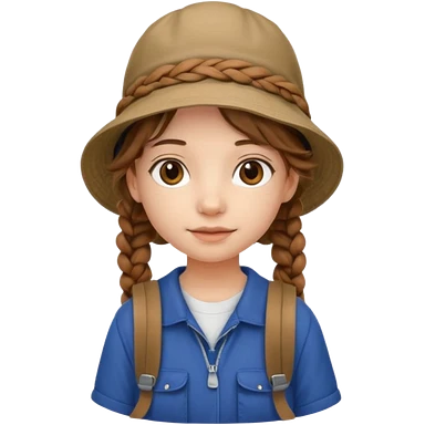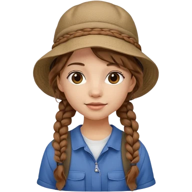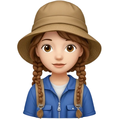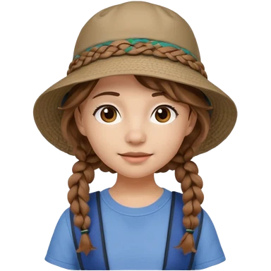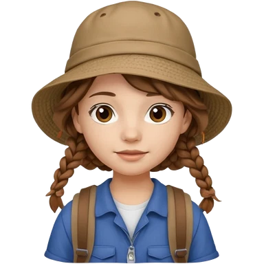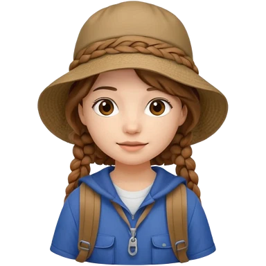 a young student girl with the backpack with bucket hat, brown wavy braided hair emoji