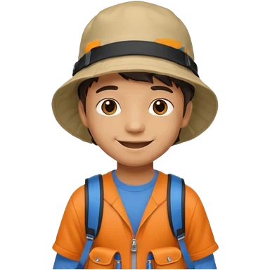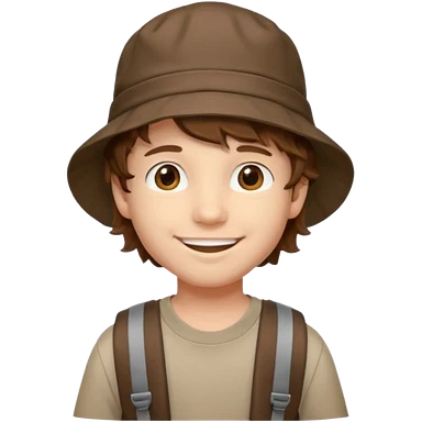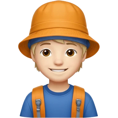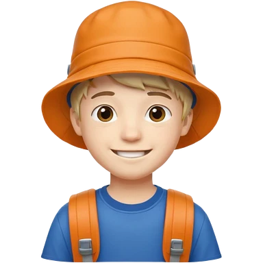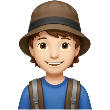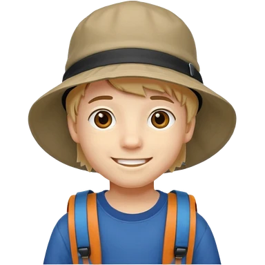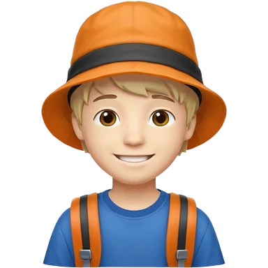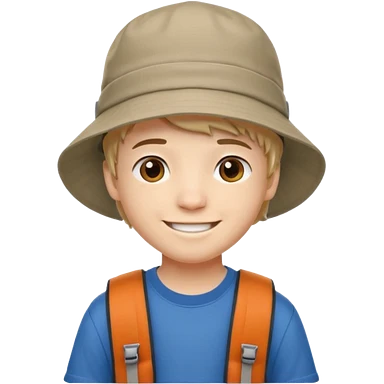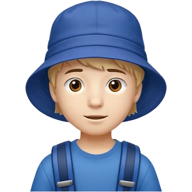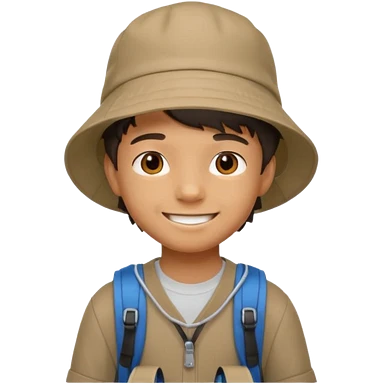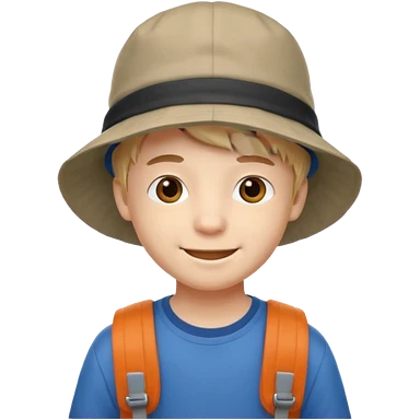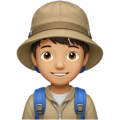 a young student boy with the backpack with bucket hat emoji | AI Emoji Generator