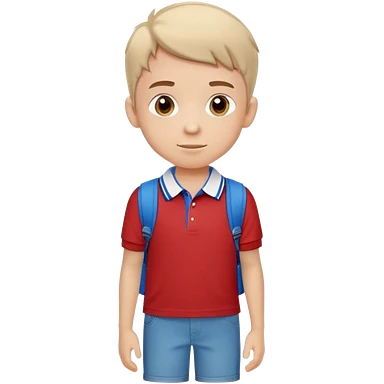 Young boy with casual and comfortable clothing, and one of his most well-known images shows him wearing a red polo shirt with blue and white details on the collar, along with a light-colored backpack on his shoulders. emoji