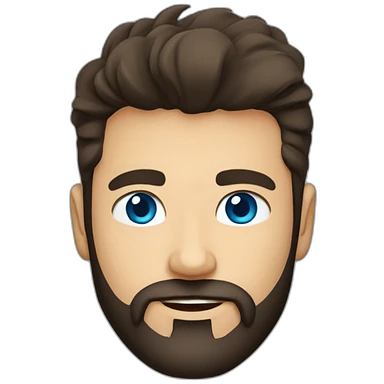 White man with a sun kissed tan, blue eyes and dark brown hair, styled sideways backwards. He has a beard and mustache trimmed. Wears s black t-shirt. emoji