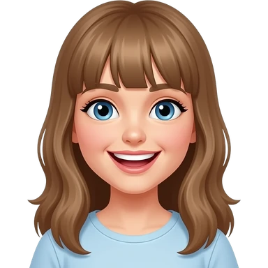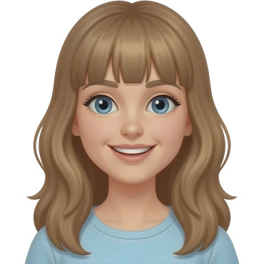 a young woman with long light brown hair and fringe and blue eyes is very happy emoji