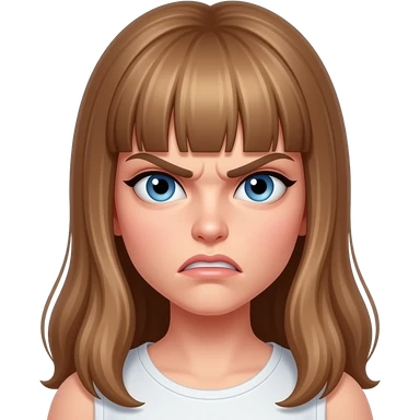 a young woman with long light brown hair and fringe and blue eyes is very angry emoji