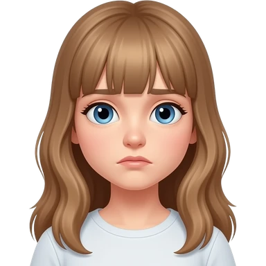 a young woman with long light brown hair and fringe and blue eyes is dissapointed emoji