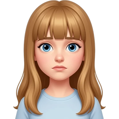 a young woman with long light brown hair and fringe and blue eyes is bored emoji
