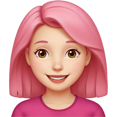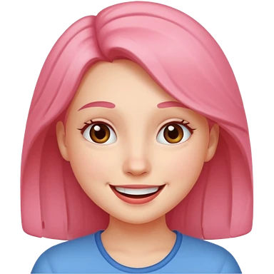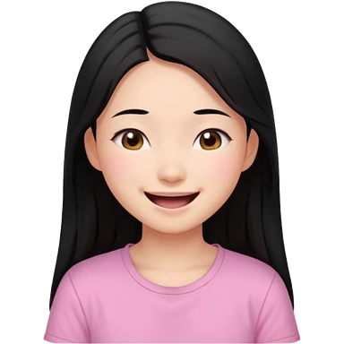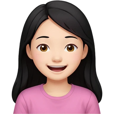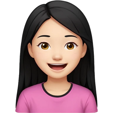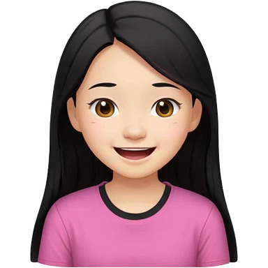 a girl genuinely feeling happy so so so much laughing so hard with her eyes folded long black hair asian girl on a pink shirt emoji