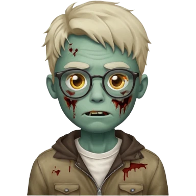 a zombie boy emoji with semi wavy hair and glasses emoji | AI Emoji Generator
