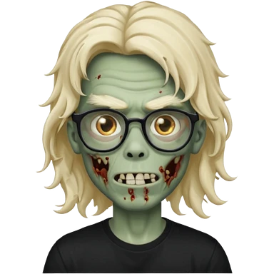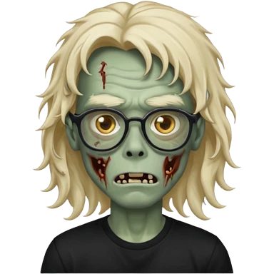 A zombie boy with long, wavy, falling hair, non-oval glasses, and a black t-shirt. emoji | AI Emoji Generator