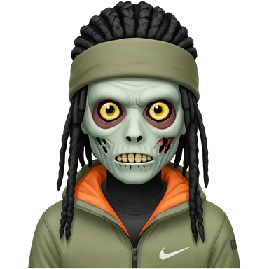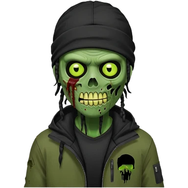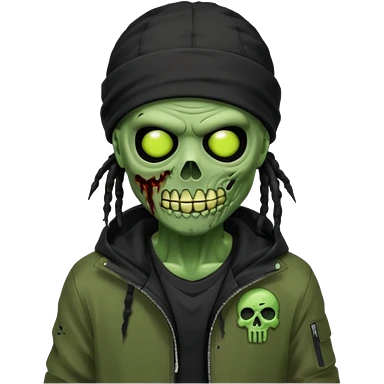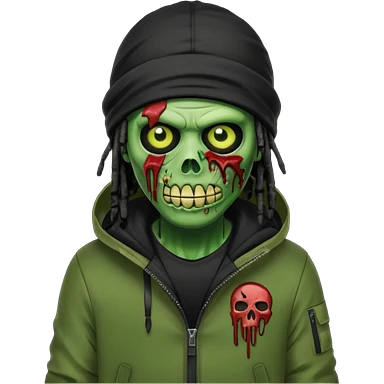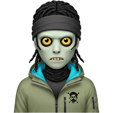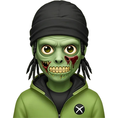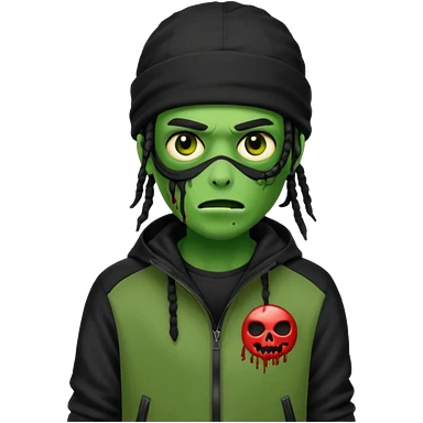 a zombie emoji with black dreads and a black nike jacket and black nike ski mask on his head emoji | AI Emoji Generator