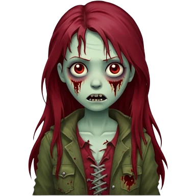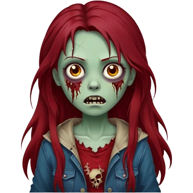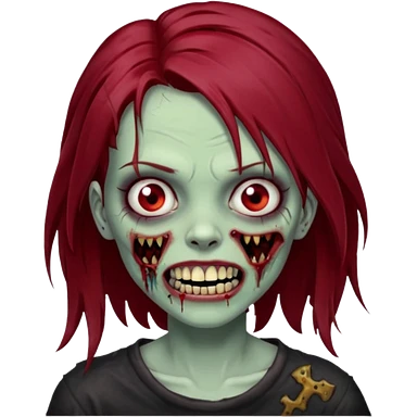 A zombie girl with dark red mid length hair emoji | AI Emoji Generator