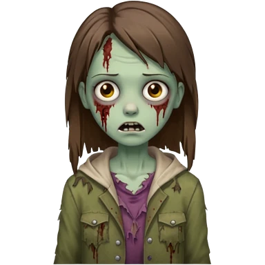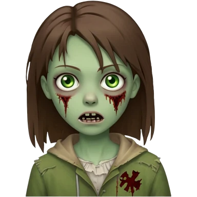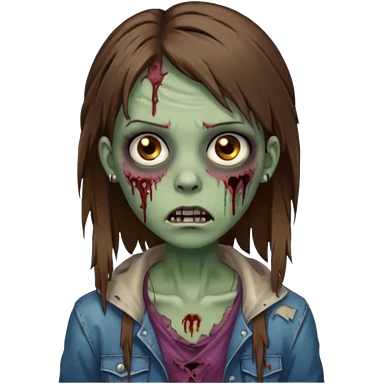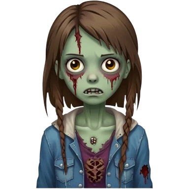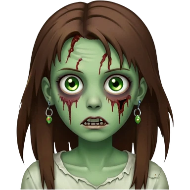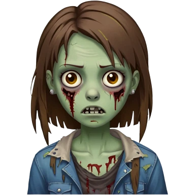 a zombie woman with straight brown long hair emoji | AI Emoji Generator