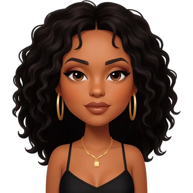 Aaliyah with black sequin crop top and pants, long dark brown hair emoji | AI Emoji Generator