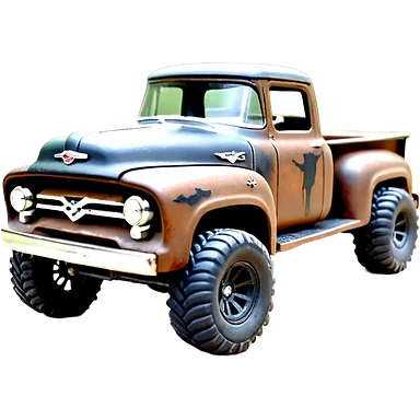1:10 off-road lcg smoking rusting Arrma Traxxas Basher style Wednesday Adam’s 1954 blackened tarnished hotrod utility streamlined anime Ford extended cab rc bulging pickup (extra wide low-profile pin tires chrome wheels with fenders) emoji