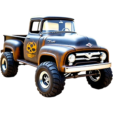 1:10 off-road lcg smoking rusting Arrma Traxxas Basher style Wednesday Adam’s 1954 blackened tarnished hotrod rat rod streamlined anime Ford zombie extended cab rc bulging pickup (extra wide low-profile pin tires chrome wheels with fenders) emoji