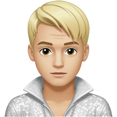 Aaron Carter with light skin, blonde hair, white sequin outfit emoji