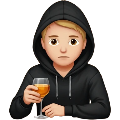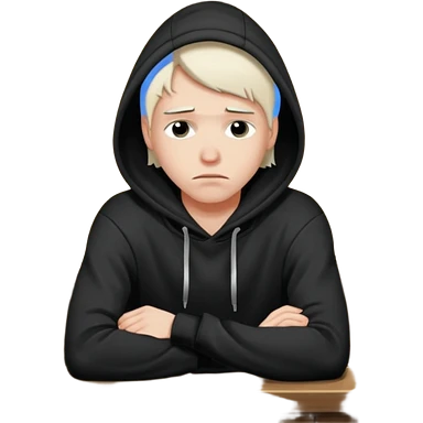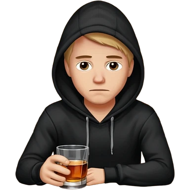 Caucasian in black hoodie sitting sad at bar emoji