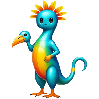 Abstract elemental colorful shiny exotic tropical La Creatura Fakémon full body emoji
