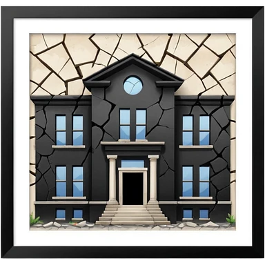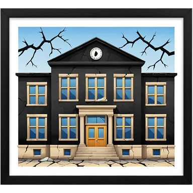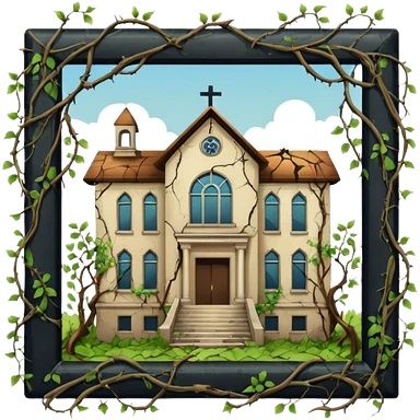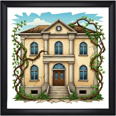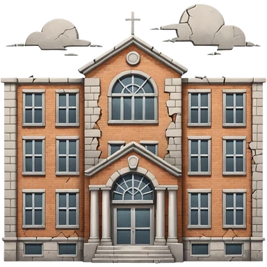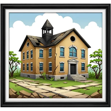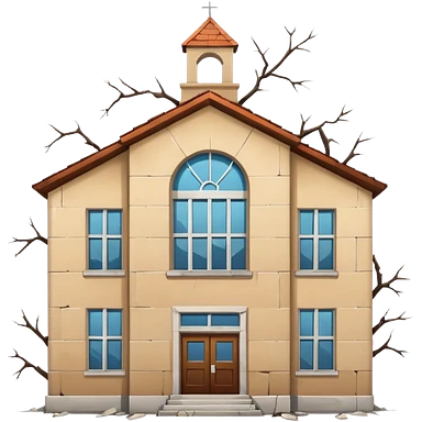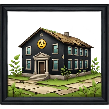 Abandoned school, cracked walls, broken windows, no background, simple style, minimal details emoji | AI Emoji Generator