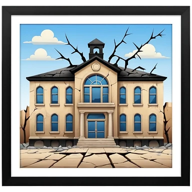 A broken/abandoned school with cracks and dust with no back ground emoji