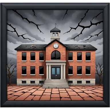 A broken/abandoned school with cracks and dust with no back ground in an abandoned place with a blackish greyish sky emoji