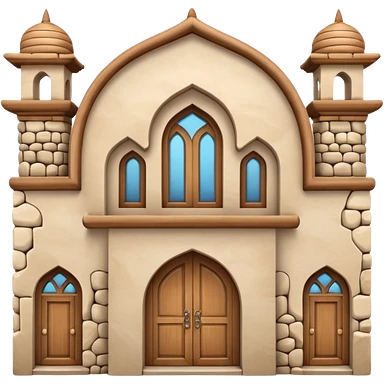 3D Apple-style emoji of a full traditional Turkish han building, showing the entire stone structure with arches, wooden doors, and windows. Rounded, glossy, smooth, soft shadows, white background. emoji