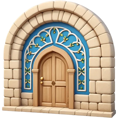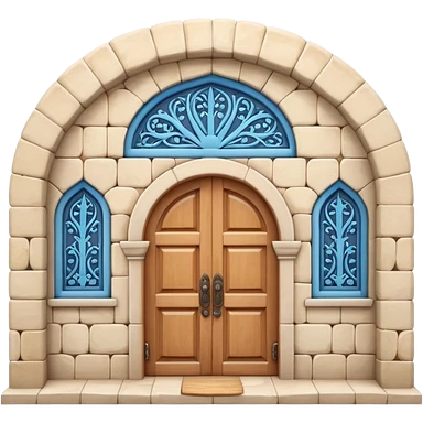 3D Apple-style emoji of a Turkish han. Rounded stone building, arched wooden door, small arched windows, simple Iznik tile decoration. Glossy, smooth, soft shadows, bright daylight, clean white background. emoji