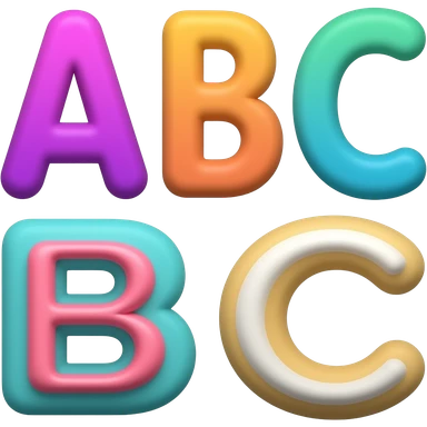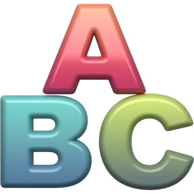 colourful letters ABC, A on top, B and C under A, soft angles, sans font emoji