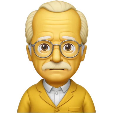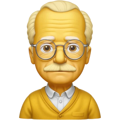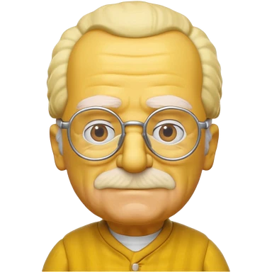 A 3D cartoon close-up of Grandpa Abe Simpson from The Simpsons, rendered in Memoji-style with bald yellow head, white tufts of hair on the sides, wrinkled face, glasses, and warm lighting. Match the Simpsons family color tone and style, yellow dress. emoji
