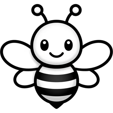 Mascote de abelha fofa, estilo de logotipo minimalista em preto e branco, contorno emoji