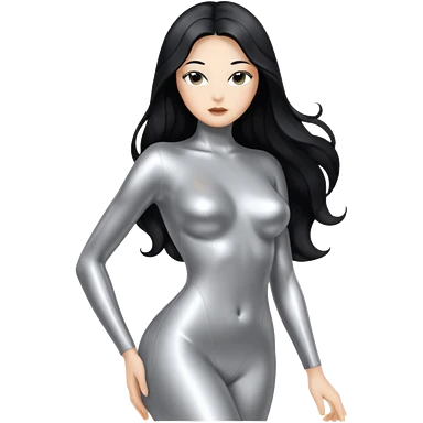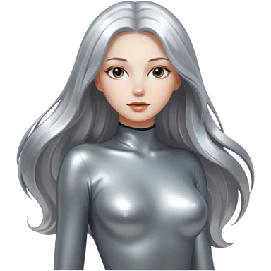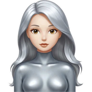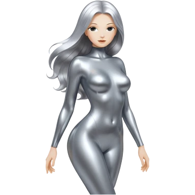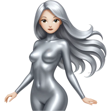 abstract sensual body silhouette, liquid silver chrome, smooth curves and posing, long metallic chorme hair emoji