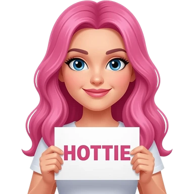 sexy girl with long pink hair holding a HOTTIE sign emoji