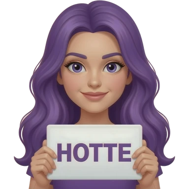 sexy girl with long purple hair holding a HOTTIE sign emoji
