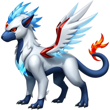 Absol-Reshiram-Fusion with blue flames (full body) emoji