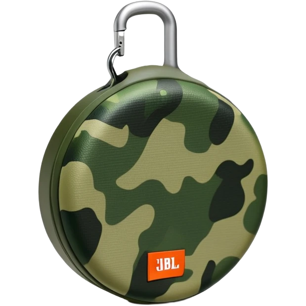 Abstract JBL Clip 4 keeping the signature round shape with clip, basic green camouflage design, iOS emoji style emoji | AI Emoji Generator