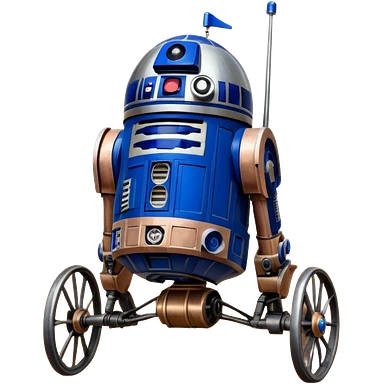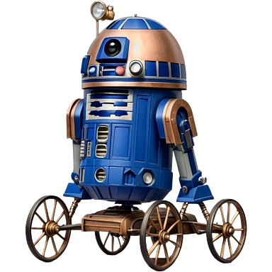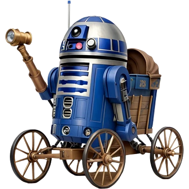 Action in Old American West tarnished R2D2 bounty policeman in 1854 delicately ornate rosegold accents painted buggy wagon powered by electric motors and batteries with safety features and belts flying rapidly across rough dusty terrain stable on strong agile futuresteampunk suspension and steering emoji