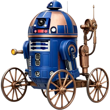 Action in Old American West tarnished R2D2 bounty policeman in 1864 delicately ornate rosegold accents painted buggy powered by electric motors and batteries with safety features and belts flying rapidly across rough dusty terrain stable on strong agile futuresteampunk suspension and steering emoji