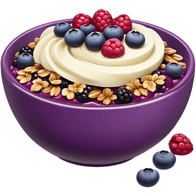 acai bowl in a purple plastic cup, clean, purple cup, healthy fruit toppings, emoji style emoji