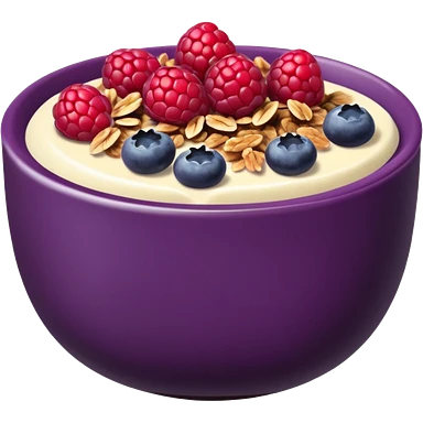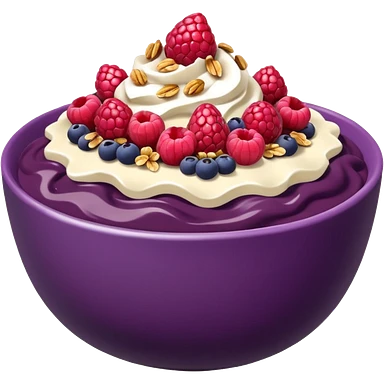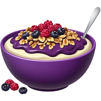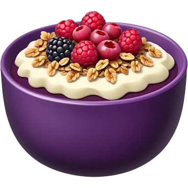 acai purple soft serve in a bowl strawberries and granola and chopped banana emoji
