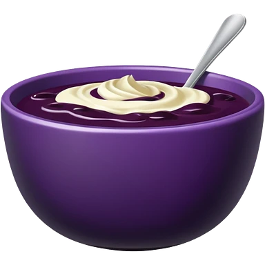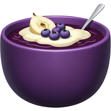 acai purple soft serve in a bowl strawberries and chopped banana emoji